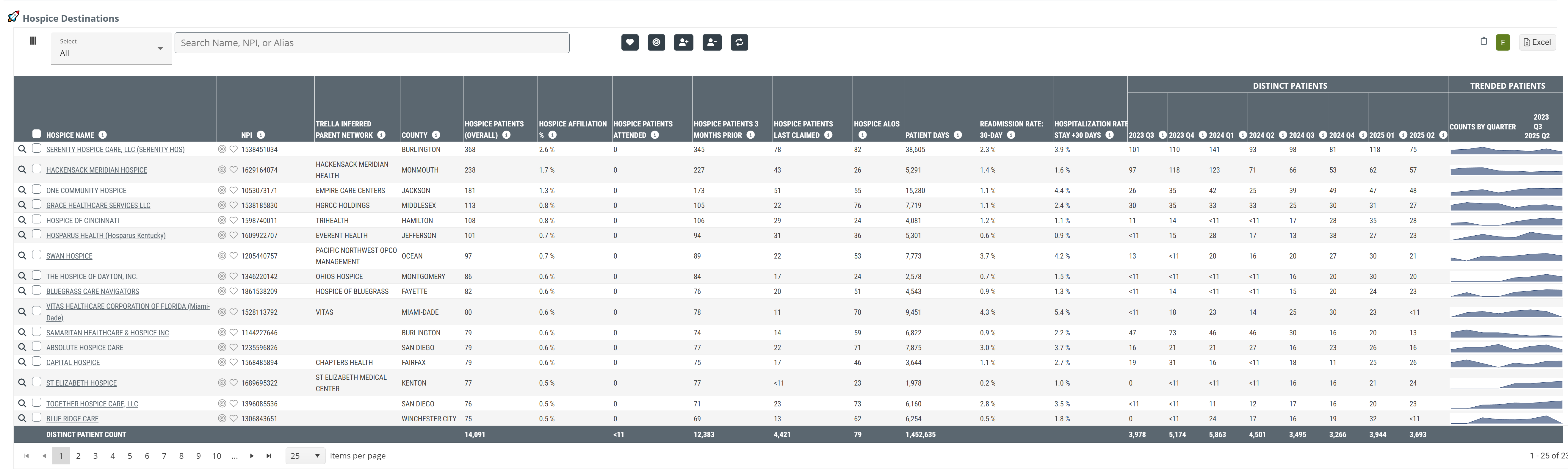 | Trella Inferred Parent Network | If the listed hospice is aligned with a Trella Inferred Patent Network, the network ID is identified in this column. | |