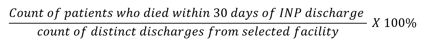 - Mortality Rate - This is the rate at which patients expired within 30 days of discharge from the selected facility following admission to the type of post-acute care identified in the row.