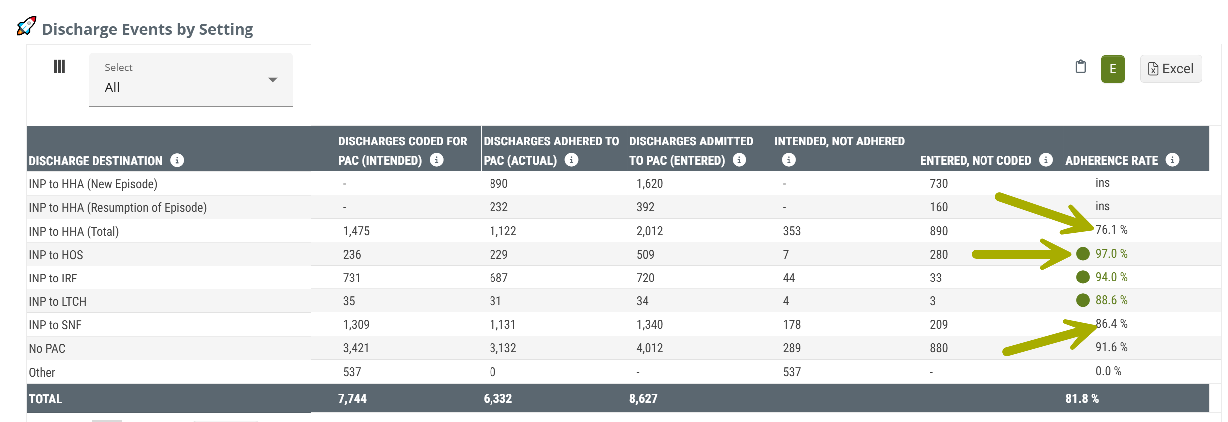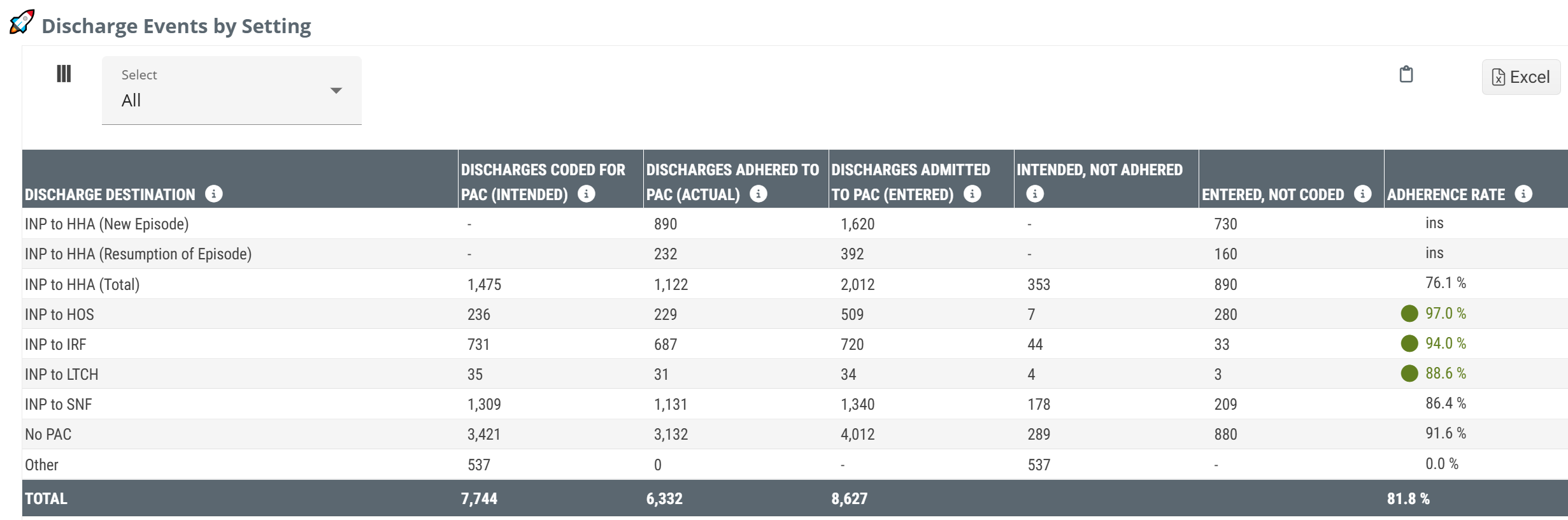 - Inpatient - Think of this as Patient Pathway. In this column we identify which post-acute destination the inpatient discharges were admitted to.